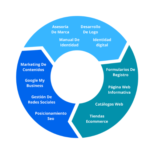 Cuenta con un equipo de profesionales en las areas de branding de marca, desarrollo web, marketing digital y sistemas de ventas.